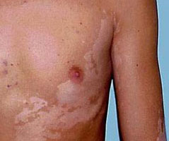 2、缺少促使黑色素生长的微量元素:其非常容易扩散,部位创伤性白癜风,其白斑不容易扩散。