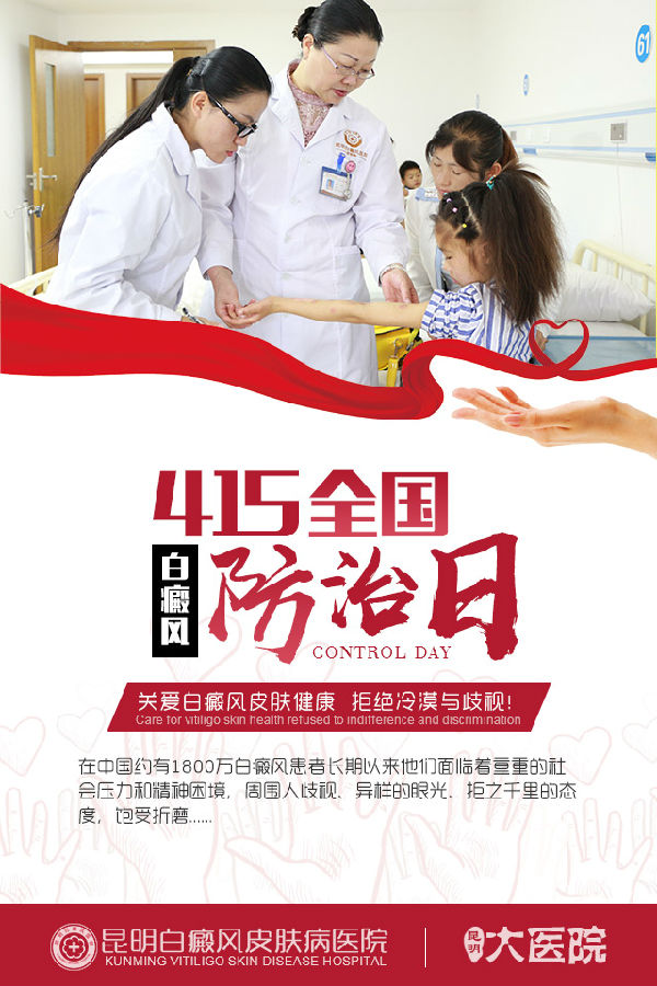 4月15日是全国白癜风防治日,防治日主要的主题是“防与治”,预防和治疗白癜风。昆明白癜风皮肤病医院凭借全国白癜风防治日到来,呼吁广大公众“关注皮肤健康、预防白癜风病发”并联合全员医师、专家推出几大防治措施!